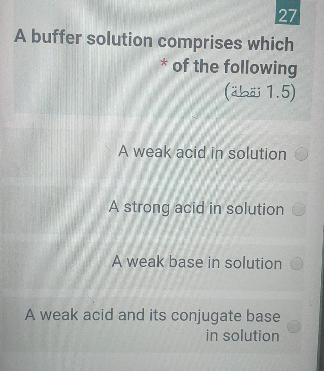 Solved 27 A Buffer Solution Comprises Which Of The Chegg Com